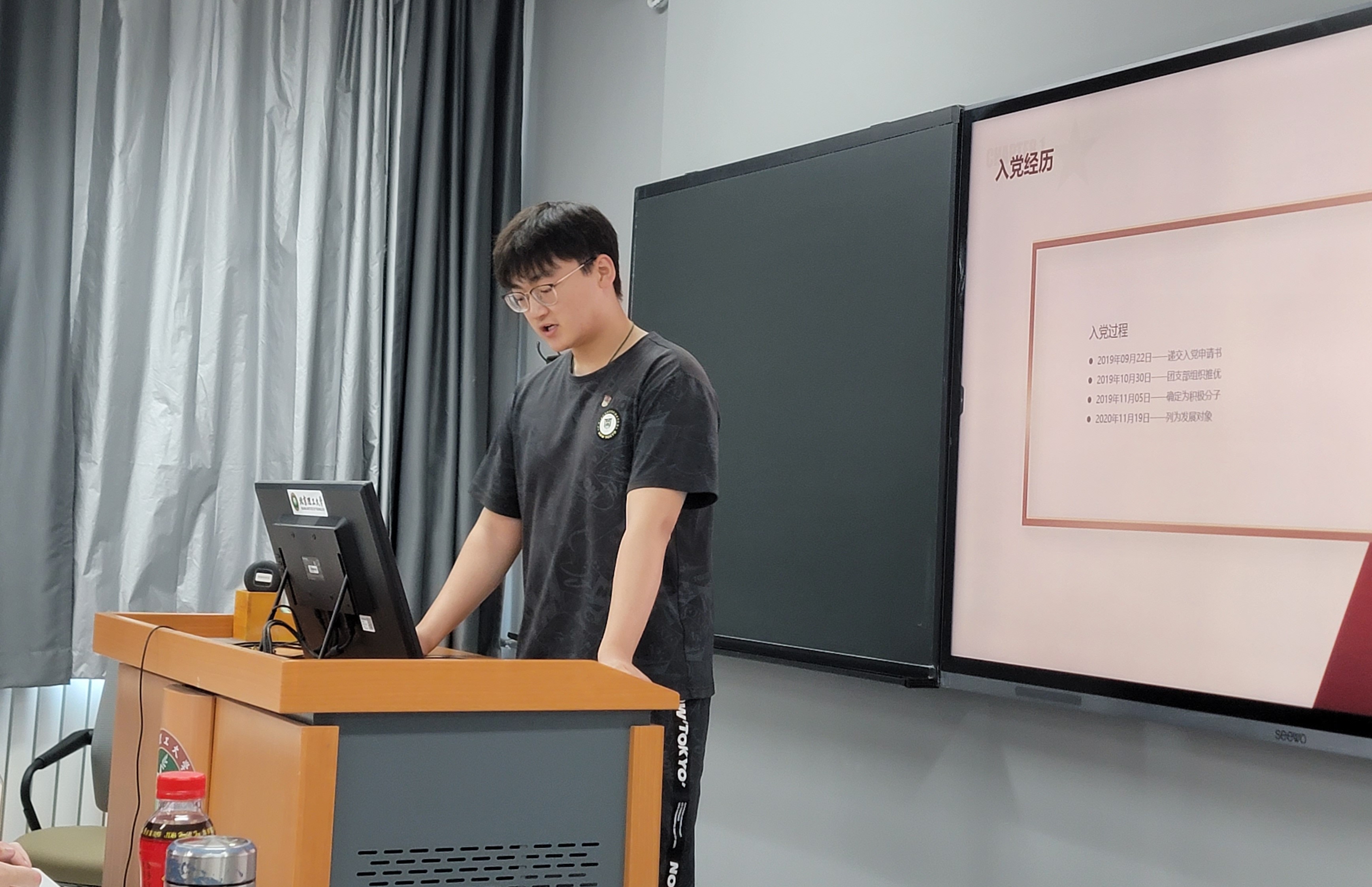 御书屋 2019级本科生党员路智尧向大家分享了自己作为党员的成长历程,他讲到学生工作要放下自己的私心,尽己所能去帮助更多的人。作为学生干部,要有敢于担当的意识和勇气,以及善做善成的能力,同时要有人情味,贴近群众。他总是以“低的姿态服务,高的站位引领”的思想坚持做好每一件事。