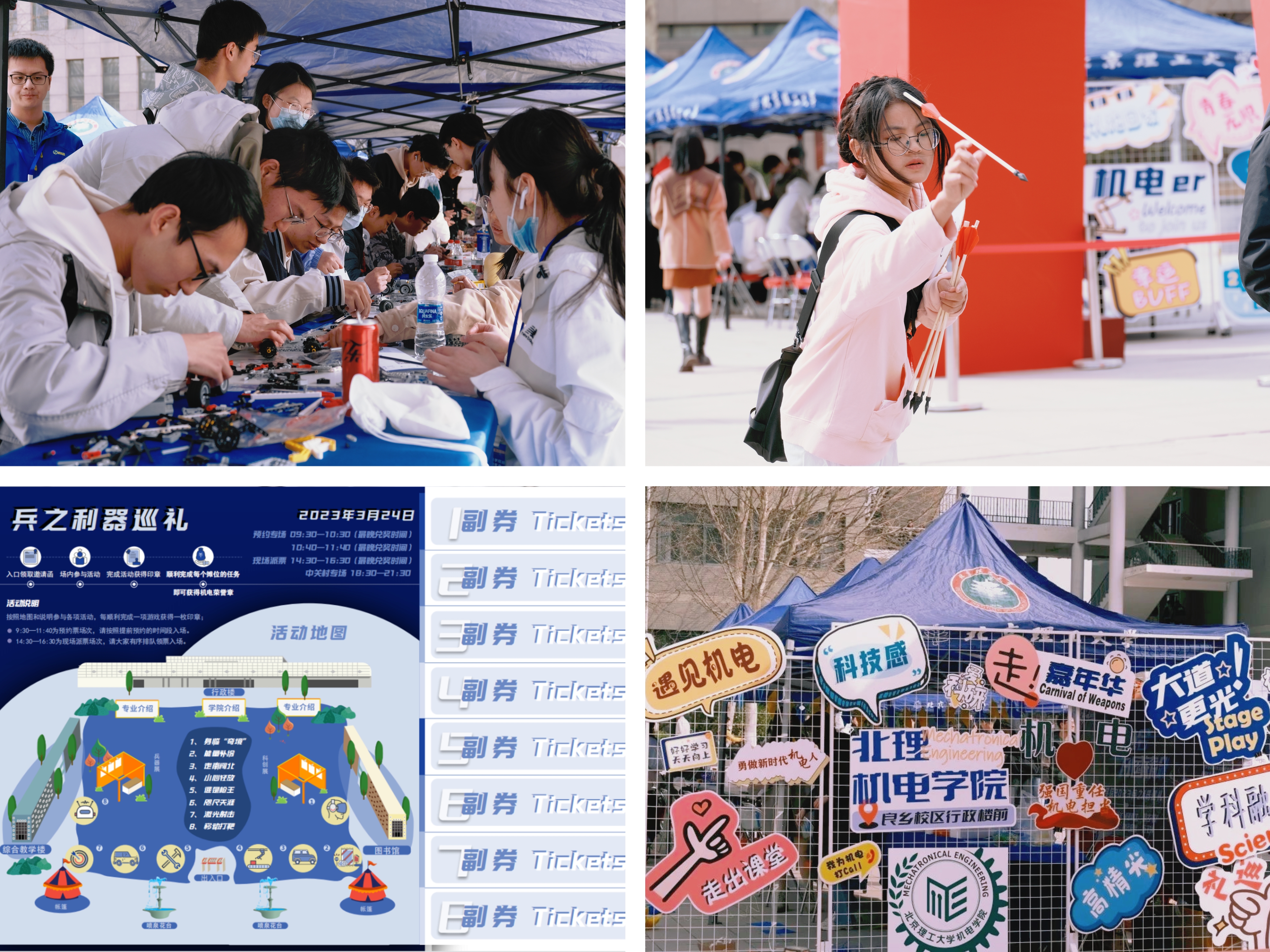 “寓教于乐,智趣结合”,丰富多彩的嘉年华线下体验活动以“兵智融合,为国铸剑”为主题,融入兵器知识科普、趣味游戏互动、VR沉浸式体验、零食饮品补给站等元素,以全新方式为北理师生带来一场洋溢着“铁血柔情”的欢乐盛宴。激烈有趣的博弈戏码时刻上演——机械控制、小车迷宫、打靶射击、模型拼装……参与者皆是乐此不疲、沉醉其中,机械臂在他们的操纵下灵活摆动,一把把完整的手枪模型在他们手下逐步成型。通过亲自感受虚拟现实的奇妙结合,遨游于多元化的科技世界,学生们感受到科技与兵器的双重浪漫,体验感直接拉满!情怀落地有声,精彩回味无穷,此起彼伏的加油呐喊和心得交流,随着和煦的春风传播到更远的地方。