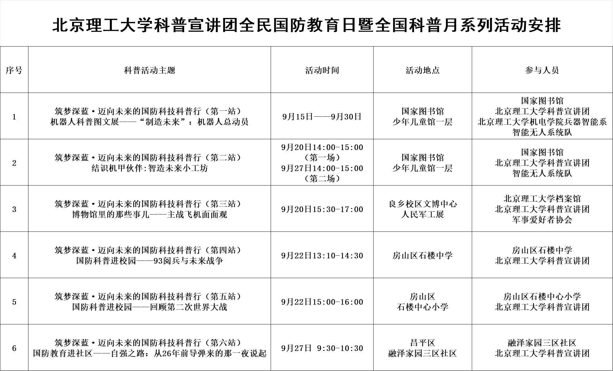 附表:御书屋 科普宣讲团全民国防教育日暨全国科普月系列活动安排