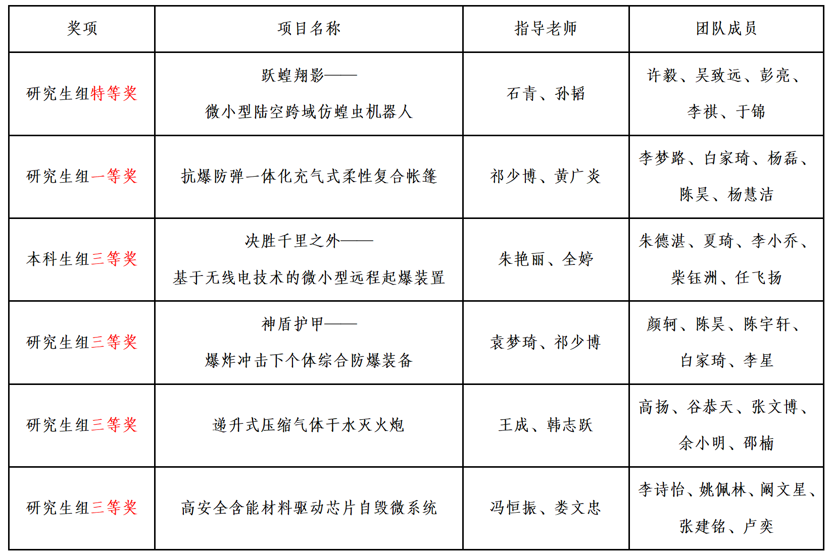 除此之外,御书屋 其他获奖团队从防爆、引爆、防护、灭火、控制系统等多方面为国家特种装备贡献新点子、新方法、新成果,未来机电学子将继续砥砺前行,筑牢“延安根、军工魂”,为国家建设贡献青春力量!