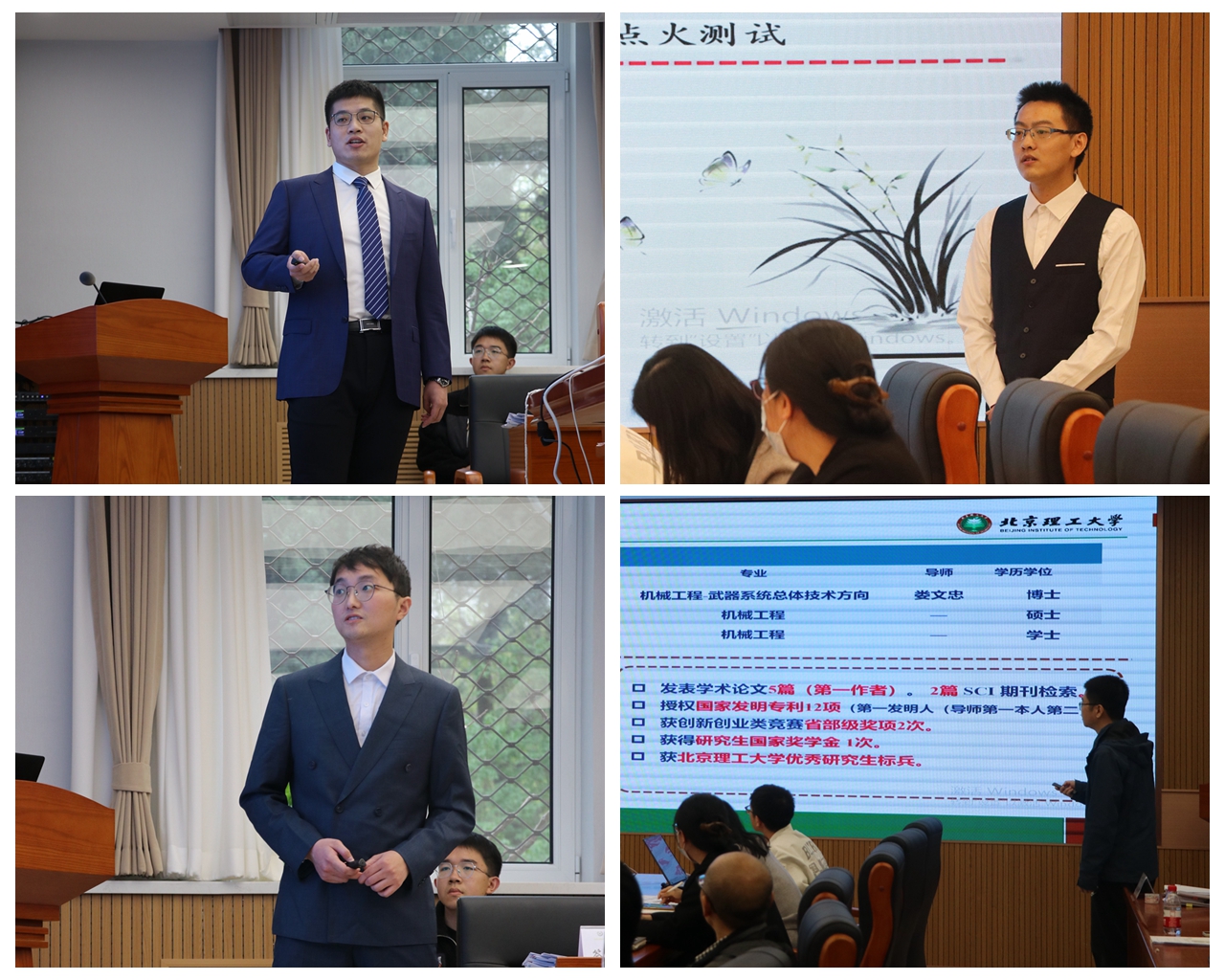 本科生答辩人简要介绍了自己本科期间的学习成绩和综合排名情况,他们积极参与课题研究和科创实践,取得了优异成绩,向大家展示了机电学子矢志创新、不懈奋斗的青春活力。