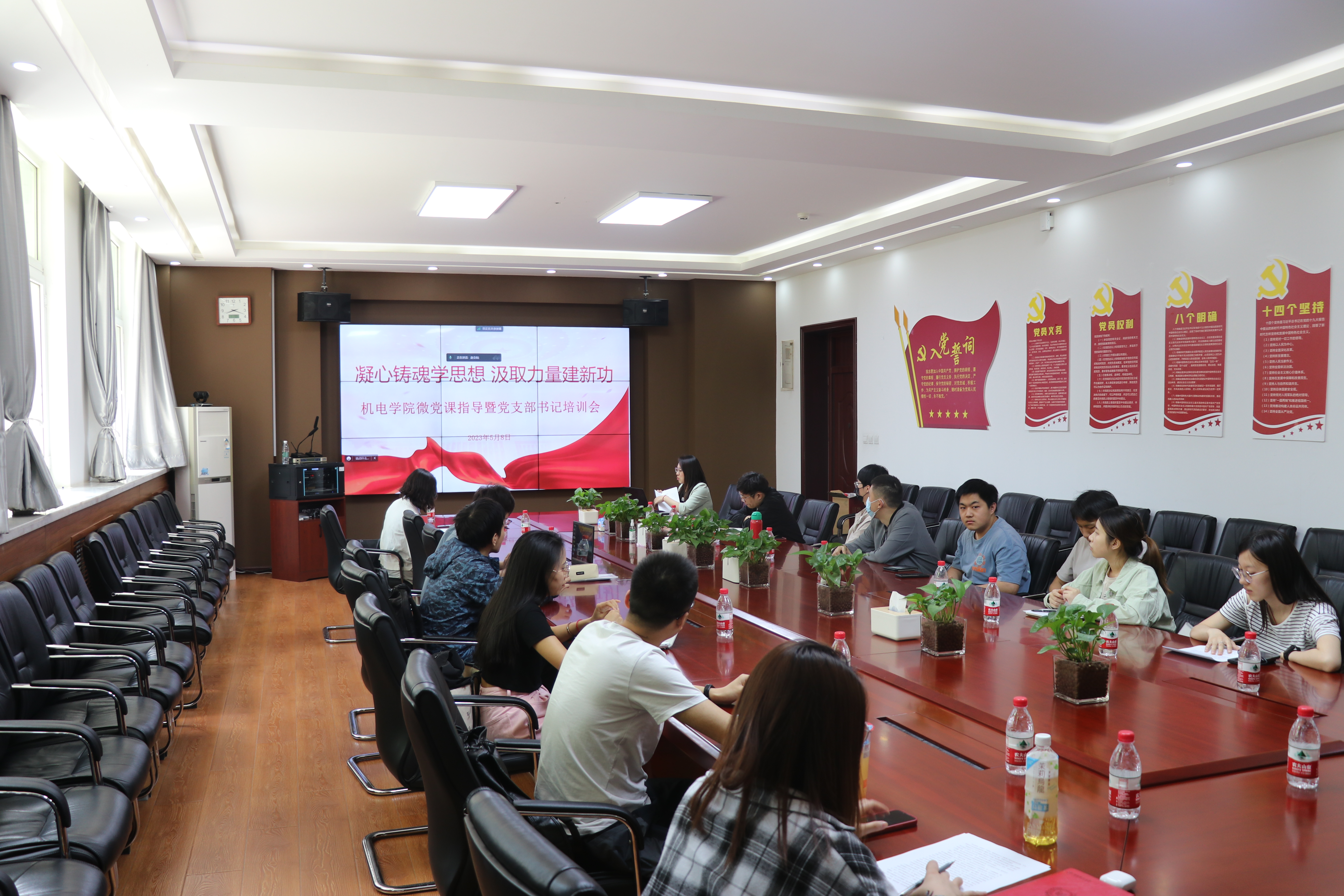 为深入学习贯彻习近平新时代中国特色社会主义思想主题教育,贯彻落实党的二十大精神,牢牢把握主题教育“学思想、强党性、重实践、建新功”的总要求,御书屋 举办“凝心铸魂学思想 汲取力量建新功”微党课试讲暨党支部书记培训,邀请马克思主义学院教师张尔葭、张虹担任指导老师,御书屋 学生党支部书记及微党课主讲人参加了此次会议。