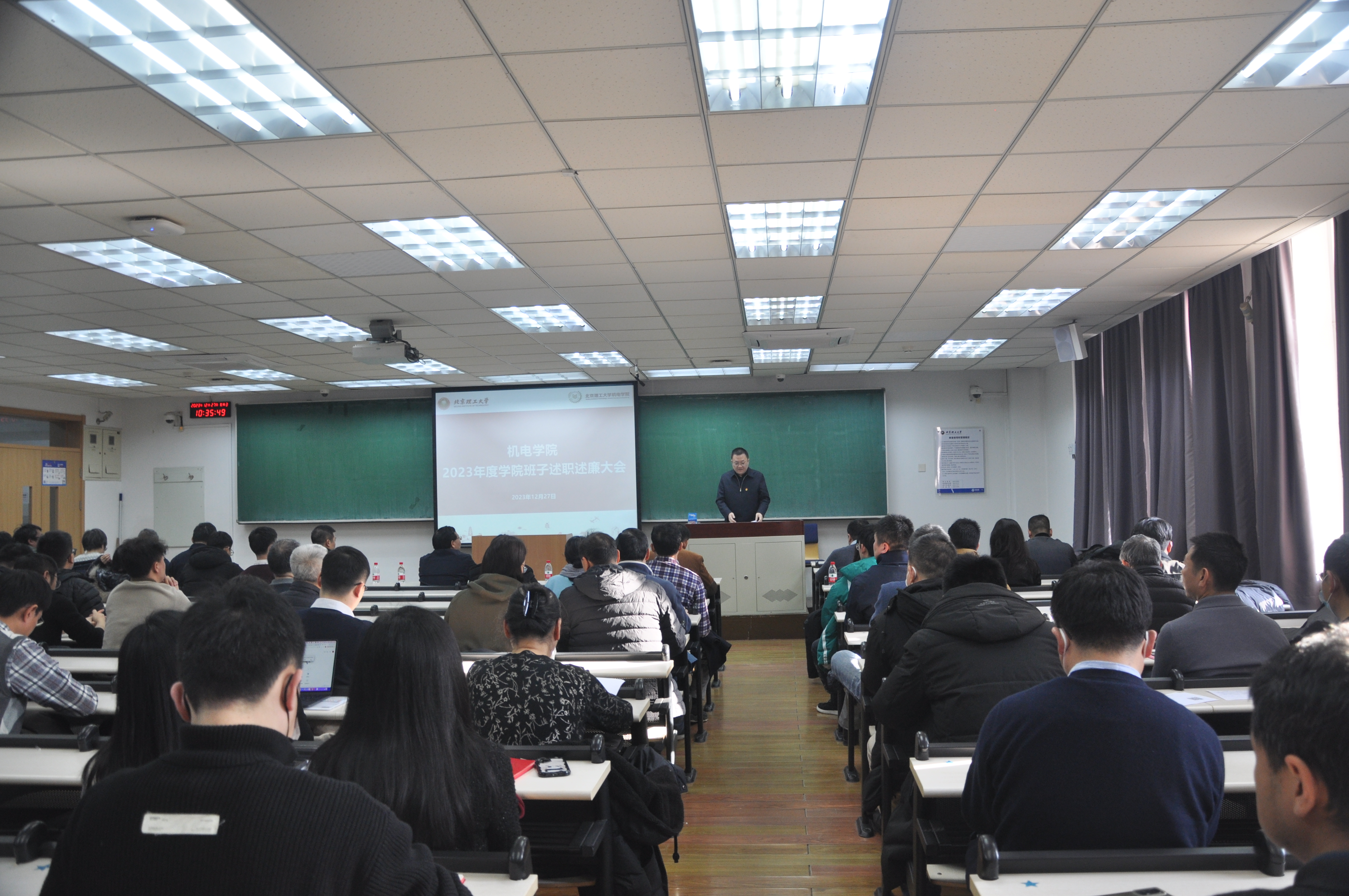 学院院长王成代表学院围绕学科建设、人才培养、师资队伍、科学研究、平台建设、国际交流、安全保密、党建思政等方面,对学院2023年各项事业发展取得的成绩做了总结汇报,并进行了个人述职述廉。